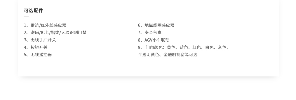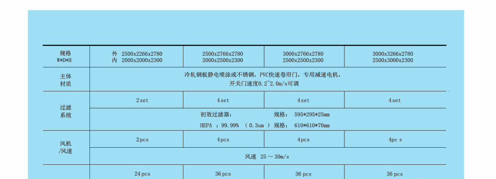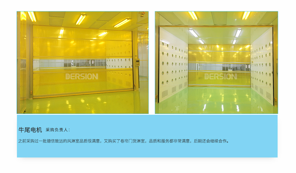 自動(dòng)卷簾門風(fēng)淋室是一種通用性較強(qiáng)的局部?jī)艋O(shè)備,安裝于潔凈室與非潔凈室之間,是貨物進(jìn)入潔凈室所需的通道。當(dāng)貨物進(jìn)入潔凈區(qū)時(shí)需經(jīng)貨淋室去除貨物所攜帶的塵埃,能有效的阻斷或減少塵源進(jìn)入潔凈區(qū)。貨淋室前后兩道門為電子互鎖,可起到氣閘的作用,阻止未凈化的空氣進(jìn)入潔凈區(qū)域。且可以作為不同等級(jí)潔凈室的緩沖室,防止貨物進(jìn)出時(shí)產(chǎn)生的交叉污染。