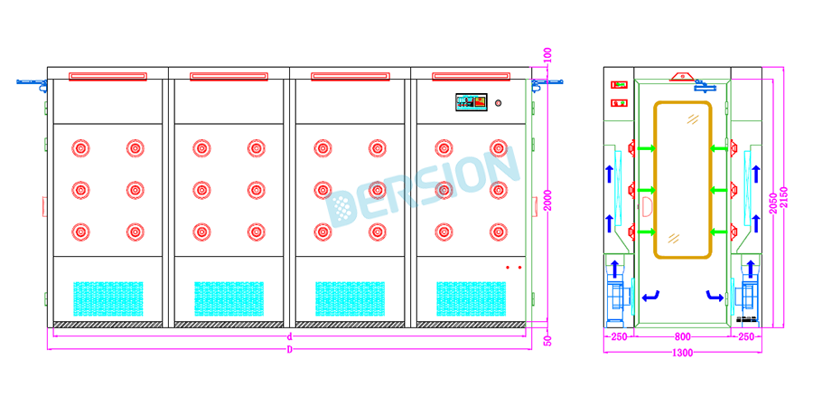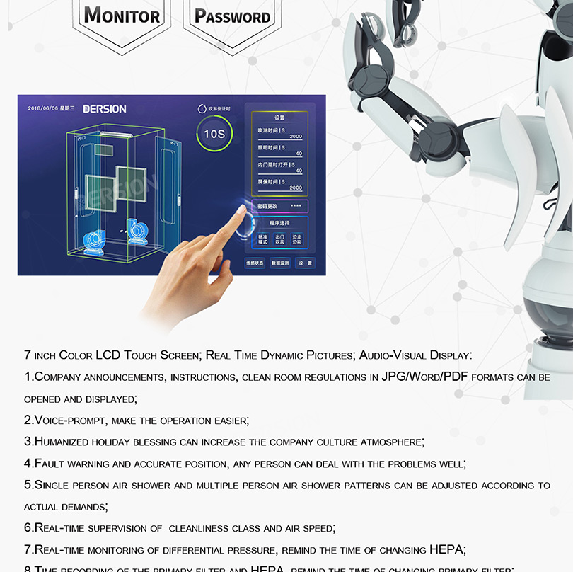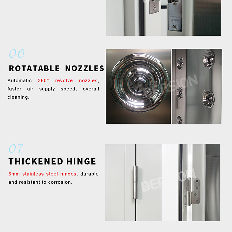 | Control | Controlled by microprocessor, voice prompt function, display shower time 0~99s, air locked doors. | ||||