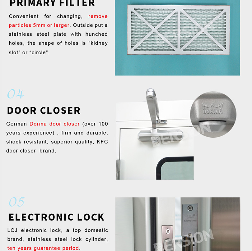 | Material | Electrostatic spraying Steel Plates or Stainless Steel Plates, 5mm double-deck glazed window with automatic door closer | ||||